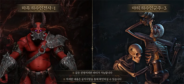 입장을 하면 진영은 직접 선택할 수 있으며, 무작위로 배치된다. 특히, 마족신전은 익명 던전으로서, 소속된 진영의 기본 외형과 익명의 닉네임이 적용된다. 예컨대 전사라면 '마족 하수인전사-1' 형식으로 표기된다.
