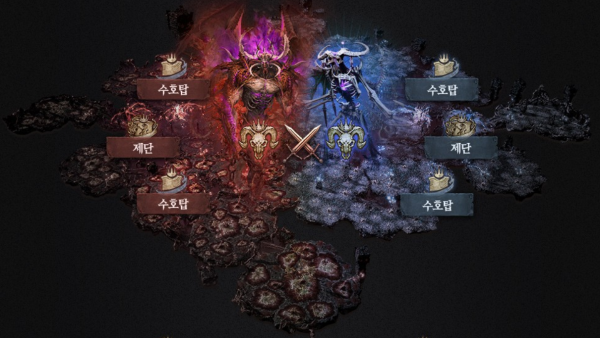 각 진영에 위치한 1개의 제단과 2개의 수호탑은 전략적인 용도로 사용하는 한편 보호해야 할 대상이다. 제단에 마족의 심장을 사용하면 아군 NPC를 소환해 전투에 합세하여 상대 보스를 공격할 수 있다.