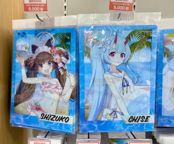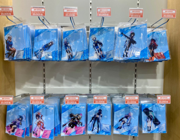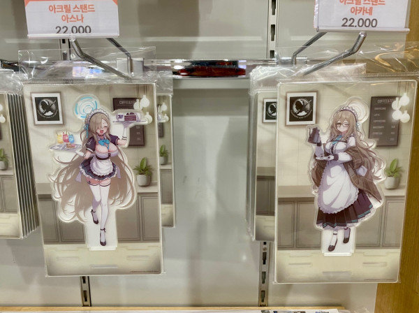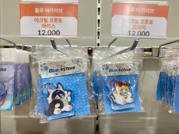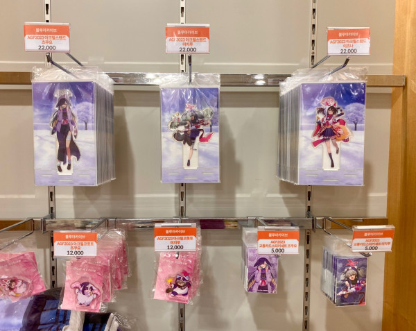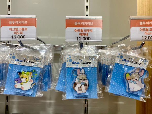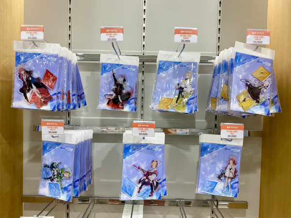 애니플러스 합정점에는 과거 진행했던 인기 애니메이션 굿즈와 서브컬처 인기 게임 '블루 아카이브' 굿즈도 전시 중이다.