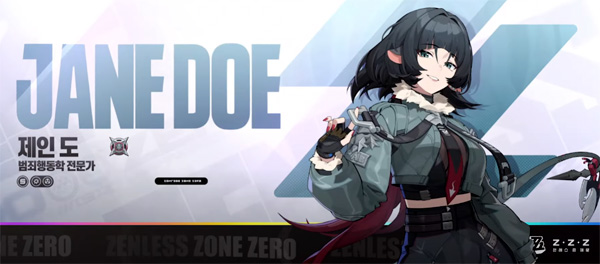 '제인 도'는 물리 속성의 이상 특성을 가지고 있는 캐릭터로, 짧은 나이프를 활용해 고속으로 전투를 펼치는 캐릭터다. 고유의 강한 디버프 효과를 활용해 적을 약화시킨 이후, 대량의 물리 공격으로 데미지를 넣는 방식으로 플레이를 이어갈 수 있다.