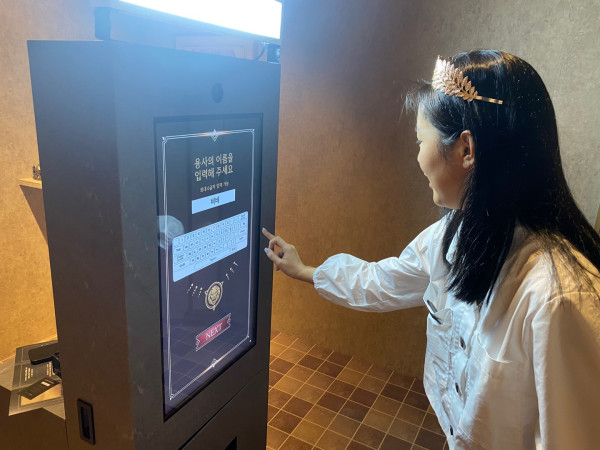 다양한 게임을 마치면 왕관과 코트가 준비된 포토존이 있다. 왕관은 여성용과 남성용으로 준비돼 있다. 사진을 찍고, 출력해 가져갈 수 있다.