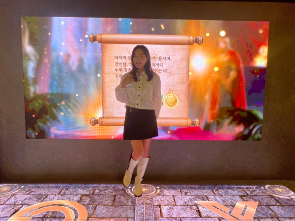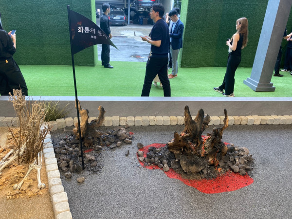 마지막 공간에는 '리니지M'의 플레이어에게 유리한 OX 퀴즈를 맞추는 공간이다. 여기서 관람객들은 3가지 문제를 풀어야 한다. '리니지M'과 관련된 문제를 풀고, O와 X자리를 선택해 통과해야 한다.