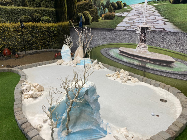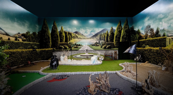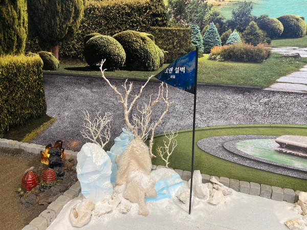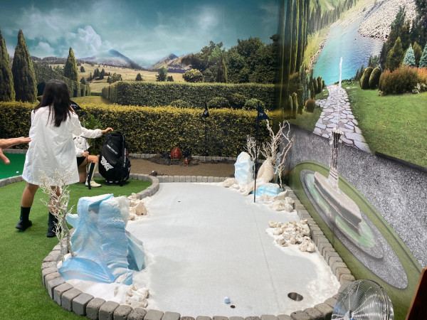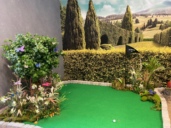 '리니지M'의 사냥터와 던전의 이름으로 구성된 퍼터 연습장이다. 관람객들은 다양한 PXG 퍼터를 선택해 골프공을 홀컵에 넣으면 된다.