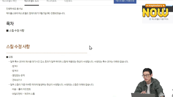 넥슨은 지난 5일 ‘메이플 나우’ 방송을 통해 ‘메이플스토리’의 테스트 월드 패치 내역을 공개했다. 여기에는 김창섭 ‘메이플스토리’ 총괄 디렉터가 참여했다.