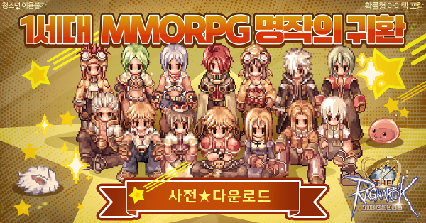 - 그라비티가 9월 8일부터 2D MMORPG ‘THE 라그나로크(THE RAGNAROK)’의 사전 다운로드를 시작한다고 예고했다. THE 라그나로크의 사전 다운로드는 정식 론칭 전 유저들에게 쾌적하고 안정적인 플레이 환경을 제공하고자 준비했으며 구글 플레이와 애플 앱스토어, 구글 플레이 게임즈에서 다운 가능하다. 라그나로크 온라인 속 그래픽, 주요 시스템, 스토리 등을 모바일로 구현했다는 점에서 원작의 향수를 느낄 수 있을 것으로 기대한다. 특히 전세계 유저들의 도트 그래픽에 대한 니즈와 지속적인 요청을 게임에 반영해 전반적인 그래픽은 한층 업그레이드하면서 원작의 도트 감성은 그대로 살렸다. 또한 원작의 특장점 중 하나인 BGM은 오케스트라가 직접 연주한 음원을 통해 풍성하고 웅장한 매력이 느껴질 수 있도록 업그레이드했다. THE 라그나로크는 9일 오전 11시에 정식 론칭할 예정이다.