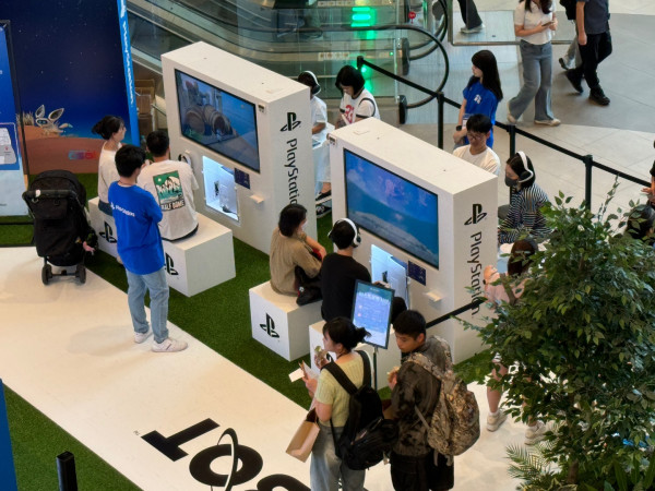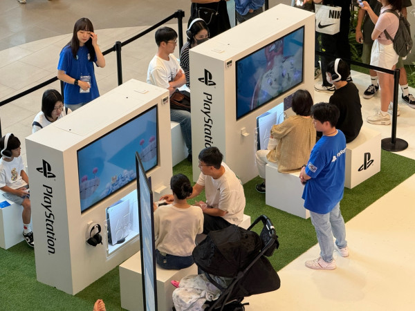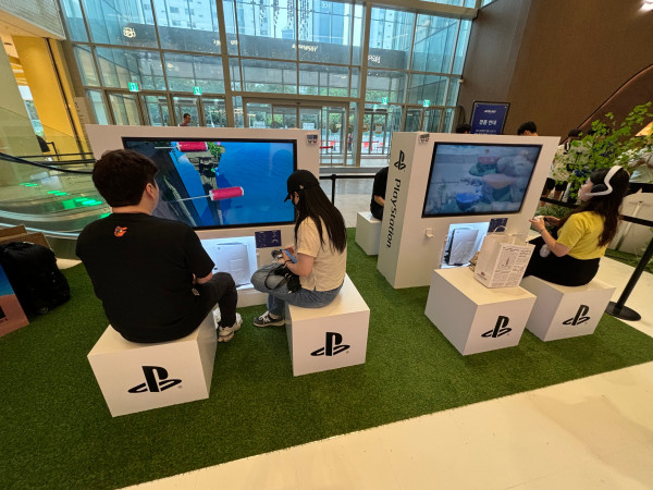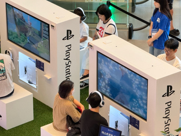 현장을 찾은 관람객들이 직접 게임을 시연해보고 있다. '시연존’에서는 아스트로봇 게임의 도입부를 PS5 와 DualSense 무선 컨트롤러로 직접 플레이해 볼 수 있다.