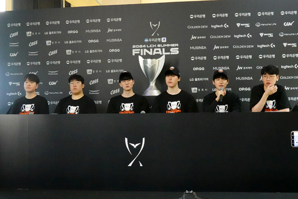 다음은 '2024 LCK 서머' 우승팀인 한화생명 선수단 전원(최인규 감독, 딜라이트 유환중, 바이퍼 박도현, 제카 김건우, 피넛 한왕호, 도란 최현준)과 진행된 질의응답을 정리한 것이다.