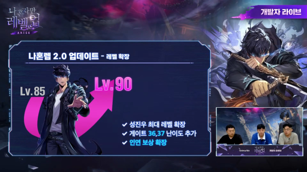 넷마블의 액션 RPG ‘나혼자만 레벨업:어라이즈’(이하 나혼렙:어라이즈)가 라이브 방송을 통해 성진우 레벨 확장 등의 신규 업데이트를 공개했다.