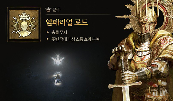 ▲군주의 신화 스펠은 적을 제압하고 자신을 보호하는 '임페리얼 로드'다. 특히, 시전 시간 동안 다른 유저나 몬스터와 충돌을 무시해 빠르게 이동이 가능하고, 적에게는 스톱 상태의 디버프를 부여한다.