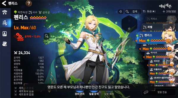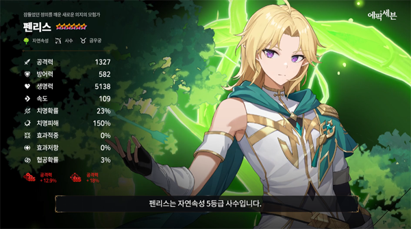'펜리스'는 자연속성의 사수 영웅으로 다양한 활 공격을 통해 돌파구를 마련하는 캐릭터다. 그림자 엘프와 인간 사이에 태어난 혼혈아의 배경 스토리 속에 외로운 삶을 살아왔지만, 란을 비롯한 새로운 동료들을 만나면서 모험의 의지를 불태우며 유저들과 함께한다.