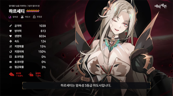 2주 후인 9월 26일에 등장을 예고한 '하르세티'와 관련된 정보도 공개됐다. 암속성 마도사 캐릭터인 '하르세티'는 그림자 엘프의 숲 스쿠기헤임을 지배하는 왕으로, 원래는 중간 계급이었으나 우수한 지능과 무력으로 자신의 위치를 만든 것이 특징이다.