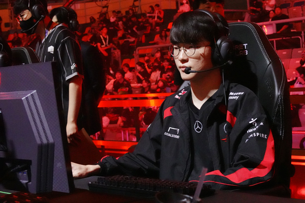 경기 초반부터 기세를 높인 팀은 T1이었다. 바텀에서 먼저 블리츠 크랭크를 잡아 퍼스트 블러드를 따냈다. 이어서 미드에서는 페이커가 상대 공격을 잘 흘리는 등 안정적인 경기력을 선보였다. 디플러스 기아는 유충 수급을 통해 앞서 나가려는 노력을 기울였다.