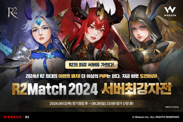 웹젠(대표 김태영)이 PC MMORPG 'R2'의 ‘R2Match 2024 서버 최강자전’ 개최를 예고하고 참가 신청 접수를 시작했다.