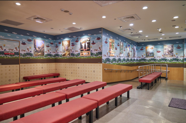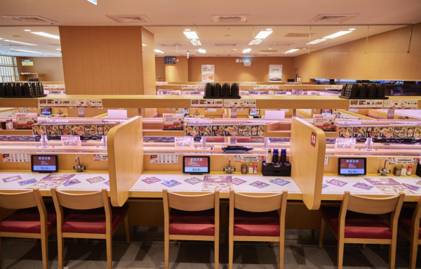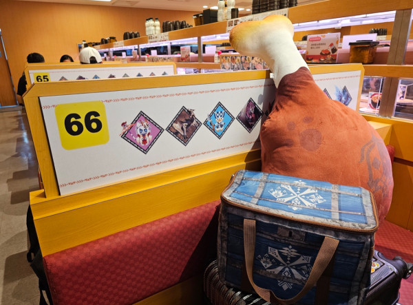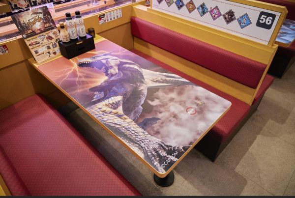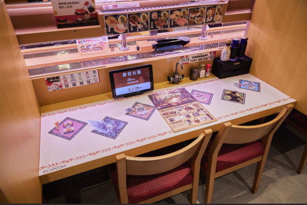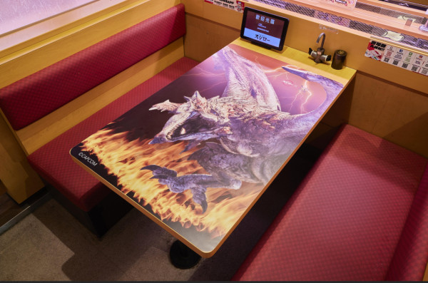 벽 패턴에는 초밥 접시 위에 서 있는 몬스터의 모습이 그려져 있다. 각 좌석의 테이블에는 타이거 드래곤과 파이어 드래곤 등 잘 알려진 다양한 몬스터도 있다.