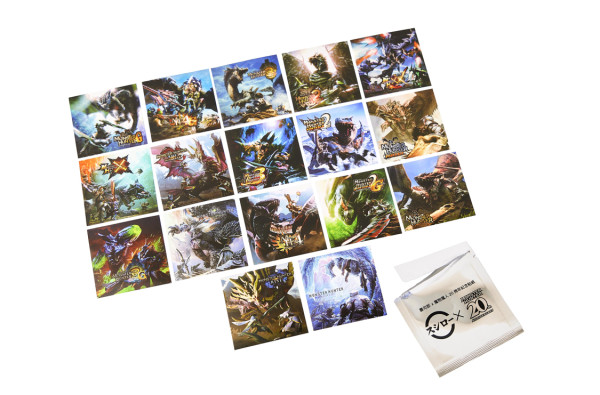몬스터 헌터 20주년 클립에는 헌터와 몬스터의 2가지 디자인이 있으며, 각각 9월 16일과 9월 23일에 발매된다. 2개의 폴더를 함께 결합하는 것이 이번 '몬스터 헌터' 20 기념일의 메인 비주얼이다.
