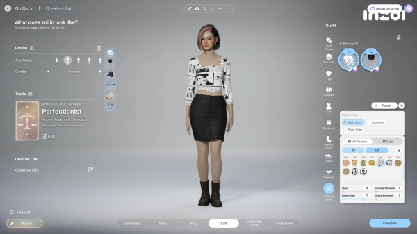 캐릭터 의상의 경우 여러 조합을 통해 기존과는 다른 스타일을 연출할 수 있다. 만들어진 의상에는 AI 텍스처로 이미지를 입힐 수 있어 세상에서 하나뿐인 나만의 의상이 완성된다. 아울러, AI 텍스처는 의상 외에도 건축을 비롯해 대부분에 적용할 수 있다.