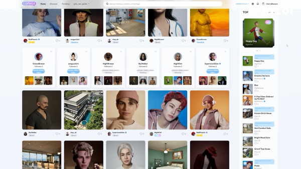 잘 만든 조이와 정말 살고 싶은 집을 만들었으면, 자기만족에 그치지 않고 남에게 보여주면서 기쁨과 재미를 공유할 수 있다. 캔버스는 '인조이'의 자체 공유 플랫폼으로서, 자신이 만든 조이나 집을 자랑할 수 있다. 반대로 누군가가 생성한 조이나 집을 다운 받아서 적용하는 것도 가능하다. 다른 유저들과 댓글로 소통하고, 만들어진 조이나 집은 원작자를 존중하도록 구성됐다.