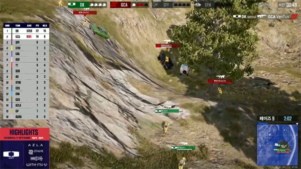경기 탑 4는 디플러스 기아와 GCA, SPF, e스포츠 프롬으로 좁혀졌다. 다른 팀들도 충분히 좋은 전략적 구도를 구축해 치킨 가능성을 높이기 위해 노력했지만, 디플러스 기아의 상승세를 막기는 힘들었다.