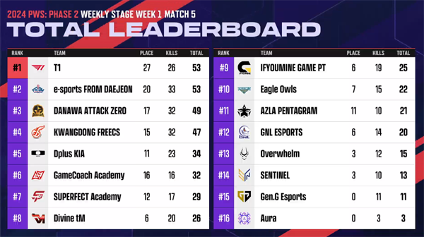 이제 16팀은 22일 1일 2일차 경기를 통해 PWS 페이즈2 첫 주의 주인공을 가린다. 확고한 상위권 팀들의 저력이 발휘된 가운데, 중하위권 팀들이 어떤 성과를 가져갈 수 있을지 관심과 기대가 모인다.