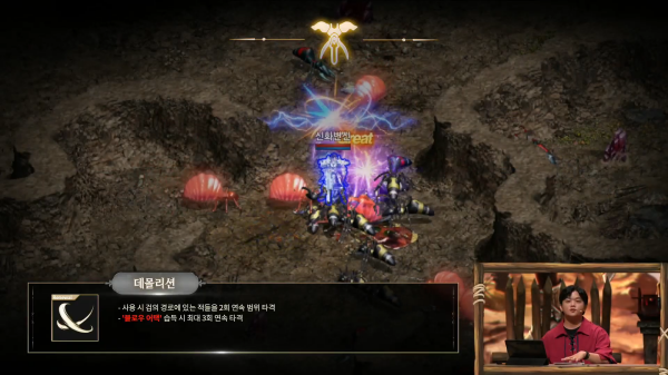 원 핸드 어택이 리뉴얼된 ▲데몰리션은 기사에게 새롭게 더해진 신규 사냥 스킬이다. 사용 시 검의 경로에 있는 적들을 2회 연속 범위 타격하고, 블로우 어택 습득 시 최대 3회 연속 타격할 수 있다. 마법 상인에게서 아데나로 구매할 수 있으며, 액티브 오토 스킬로 편하게 사용할 수 있다.