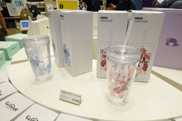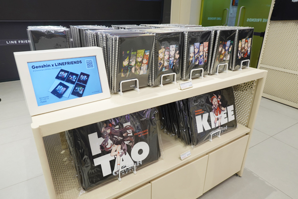 팝업 스토어의 굿즈는 다채롭다. '원신 미니니'의 플러시 인형부터 키링, 피규어, 스티콘 세트 등을 비롯해 스마트독, 핸디팬과 장우산, 콜드컵 등을 선보인다. 또한 특별한 라이덴 쇼군 워터볼과 원신x라인프렌즈 콜라보 티셔츠 및 파우치들도 판매된다.