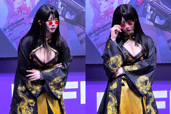 각자 캐릭터로 변신한 코스튬 플레이어들은, 단순히 사진 촬영을 위해 가만히 서 있지 않았다. 다양한 포즈를 취하는 것에 더해 무대 좌우를 휘저으며 다양한 행동으로 관람객의 시선을 사로잡았다.