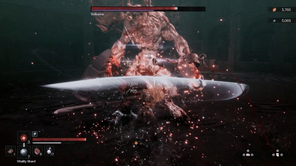 준비된 보스전에서는 다양한 무기를 테스트해 볼 수 있다. 대검은 강력한 데미지가 특징으로, 대부분의 공격을 충전해 사용하여 느리지만 그만큼 높은 데미지를 가할 수 있다. 방어와 반격에 탁월하여 적을 제압할 수 있는 만족스러운 플레이 스타일을 제공한다.