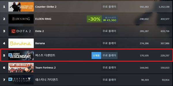 장기 서비스를 바라보는 ‘퍼스트 디센던트’는 출시 100일을 앞두고, 출시부터 현재까지 다양한 지표에서 성과를 거두며 글로벌 시장에서 주목을 받았다. 게임 플랫폼 스팀(Steam) 기준 최고 동시 접속자 5위 달성 및 26만 명 돌파, 매출 1위를 기록하는 기염을 토하며 넥슨의 신규 IP임에도 불모지인 루트슈터 장르로서 초반 흥행에 성공했다.