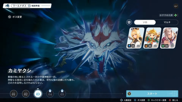이번 도쿄게임쇼에서는 PC와 모바일에 걸쳐 약 16대의 시연대를 준비했다. 원하는 플랫폼으로 시연이 가능하며, NPC 아마린을 만나 보스 공략 콘텐츠를 싱글 모드와 멀티 모드로 체험할 수 있다. 싱글 모드는 3명의 캐릭터 중 원하는 캐릭터로 교대해 가며 전투를 펼칠 수 있으며, 멀티플레이는 한 명의 캐릭터만 조작할 수 있다.