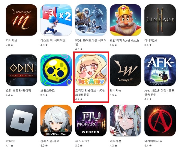 기존의 최고 성적은 35위였는데, 이번에 게임 출시 이후 최고 기록을 경신하게 됐다. 참고로 이 매출 순위는 스마트폰 기준이며, 태블릿 기준으로는 5위에 오른 것으로 나타났다. 게다가 스토어의 평점은 4.9점으로 TOP 10 게임 중 최고점을 기록 중이다. 그만큼 유저들이 게임에 상당히 만족하고 있는 상황이다.