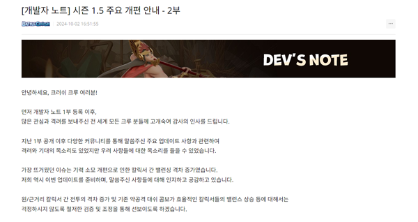 새롭게 구성된 '배틀크러쉬'의 시즌 1.5 업데이트는 오는 10월 10일 진행될 예정이다.