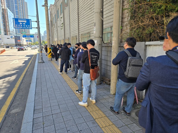 전시회에 입장 전 순번 등록을 위해 행사장 근처에는 긴 대기열이 형성됐다. 가장 먼저 전시회장을 찾은 유저는 새벽 6시부터 대기를 진행했다고 한다.