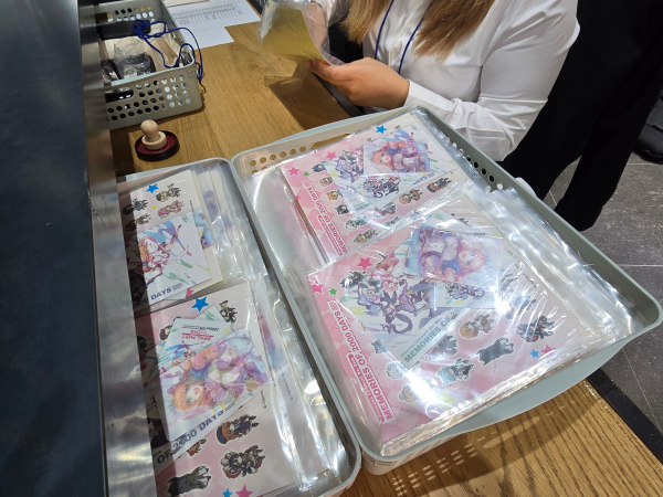전시회의 마지막 코너는 뽑기였다. 전시회 방문 기념으로 경품에 도전할 수 있는 뽑기 존이었다. 입장료를 지불했을 때 받는 코인으로 뽑기를 할 수 있었는데, 그 결과에 따라 미야코 피규어부터 스티커까지 다양한 굿즈들 중 하나를 받을 수 있었다.