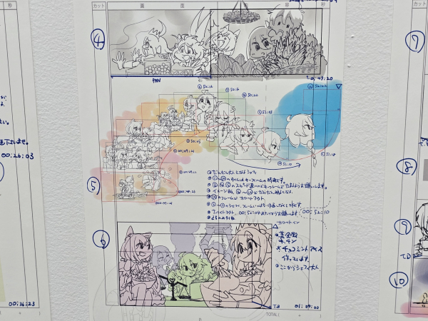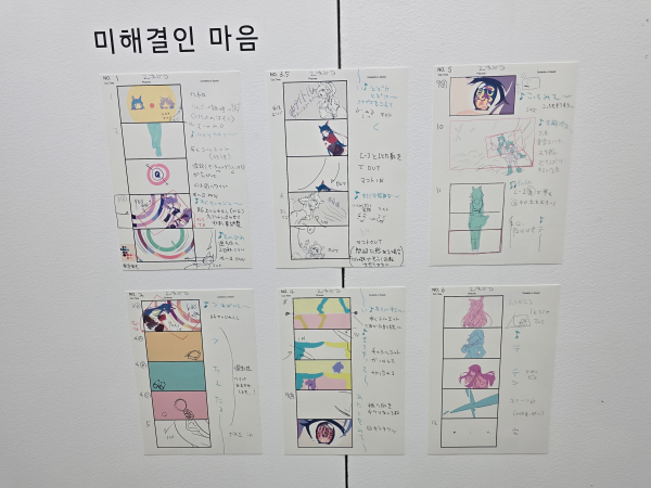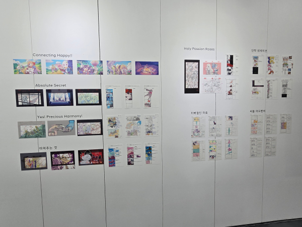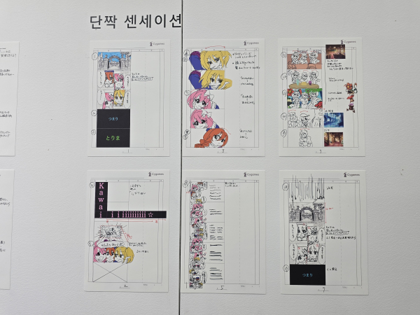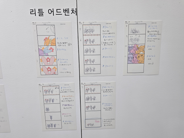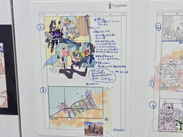 그 옆에는 국내에서 처음 공개되는 콘티 제작에 쓰였던 콘티 원화가 있었다. '프리코네'에서는 업데이트마다 에피소드가 있고, 여기에는 오프닝과 엔딩이 존재한다. 그 장면을 구성하는 콘티가 공개된 것이다.