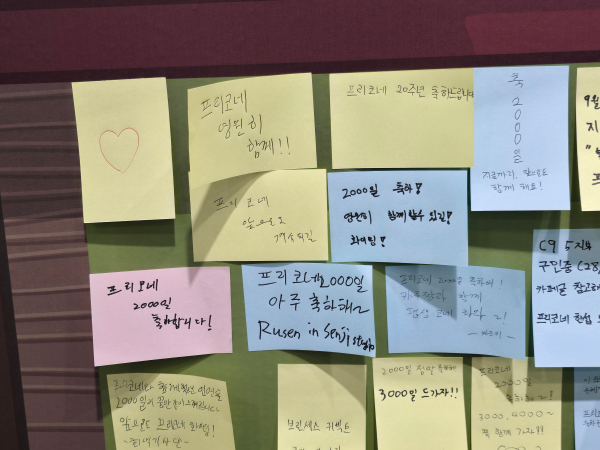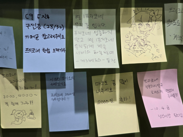 그 옆에는 게임에 대한 추억과 응원의 문구를 남길 수 있는 메모리 월이 마련됐다. 행사 첫 날이어서 종이가 많지 않았는데, 응원과 함께 길드 구인에 나서는 문구도 확인할 수 있었다.