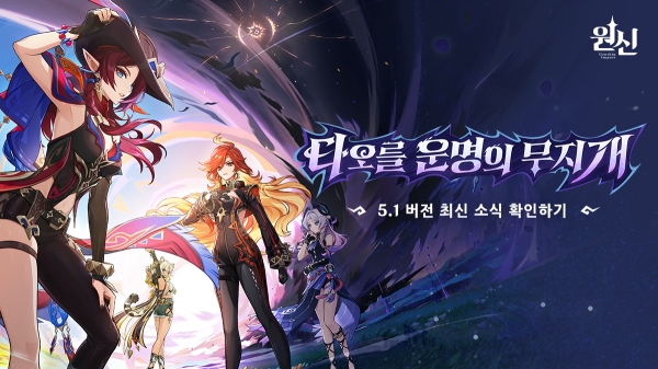 호요버스의 오픈월드 RPG '원신'이 오는 10월 9일, 5.1버전 '타오를 운명의 무지개' 업데이트를 단행한다. 지난 8월 업데이트된 5.0 버전에서는 새로운 지역 나타와 신규 캐릭터들을 대거 선보이면서 여행자들로부터 큰 호응을 얻은 바 있다.