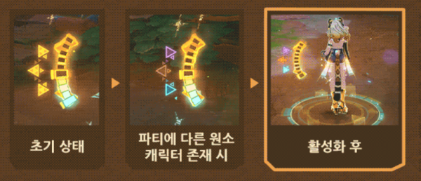 원소 폭발 '야생의 리듬'은 적에게 바위 원소 범위 피해를 준다. 또한, 파티 구성에 따라 필드의 캐릭터에게 지속적인 치유 효과를 제공하거나 적에게 피해를 2회 추가로 주게 된다.