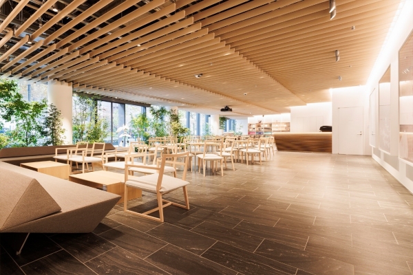아틀리에 1층은 카페와 라이브러리가 위치해 직원들의 쉼터로 사용되는 공간이다. 이곳은 다양한 서적을 열람하고, 신입 사원 환영회로도 사용된다. 하지만, 방문한 날은 'NHN 재팬 일본 게임 사업 및 향후 전략 발표회'가 열려 부득이하게 간담회 장소로 변경되면서 원래의 모습은 볼 수 없었다. 아쉬움은 사진으로 채우도록 하자.
