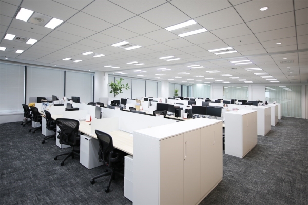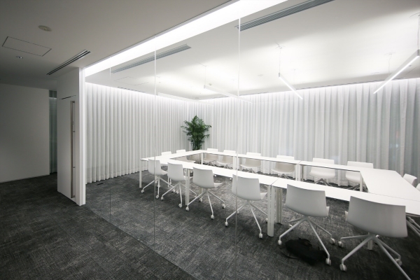 업무를 보는 직원들의 책상은 가로 160cm 정도로 폭이 넓으며, 의자도 유명 브랜드 상품을 사용해 편안한 업무 효율화를 돕고 있다. 회의실에는 커튼으로 포인트를 줬다. 아주 얇은 재질로 보이며, 커튼과 책상 및 의자를 모두 화이트칼라로 처리해 깨끗한 느낌을 강조했다.