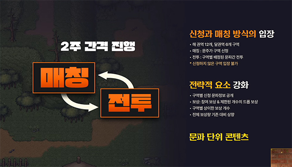 경쟁은 크게 경쟁 콘텐츠의 개편과 추가를 단행하고, PvP 밸런스 구조도 개선한다. 잦은 변화를 통해 콘텐츠에서 오는 스트레스를 줄이고, 자주 참여하도록 유도할 계획이다.