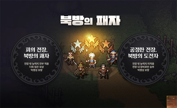 ▲북방의 패자는 당초 상위 수행자를 위해 기획했지만, 더 많은 수행자를 위해 신규 모드를 1종 더 추가했다. 기본 스펙을 기반으로 하는 배틀로얄 방식의 북방의 패자와 전장 밖 능력치는 미적용하고, 전장 내 장비로만 승부를 하는 북방의 도전자로 나뉜다. 두 가지 모두 익명성을 보장한다.