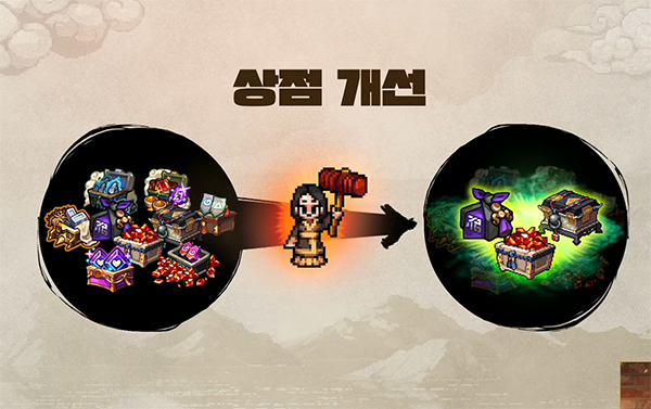 상점은 개선 사항 중에서 가장 어려운 부분으로, 현재 상품이 ‘바람의나라: 연’과 맞지 않아 개선을 하게 됐다. 김동현 디렉터는 “인게임 가치를 잘 지켜내지 못했다”며, “상품을 구매한 수행자들에게 아쉬움이 남지 않도록 조정하다 보니 모든 수행원들에게 만족감을 주기 어려웠다”고 토로했다.