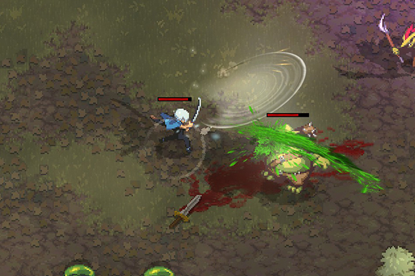 특히, 역동적인 액션에서 파생되는 다양한 효과를 픽셀아트로 무난히 구현했다. 덕분에 3D 그래픽이라면 다소 잔혹하게 보일 수 있는 액션도 픽셀로 한 차례 필터링 되는 느낌이다. 선혈이 낭자하거나, 널브러진 시체를 봐도 하드코어적인 비주얼과는 느낌이 다르다.