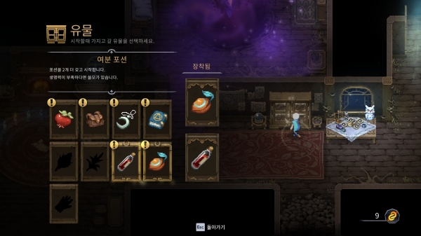 사망하면 주인공은 다시 집으로 돌아온다. 전투 중 획득한 재화를 가지고, 기본 능력치를 영구적으로 업데이트하는 로그라이트 시스템도 갖췄다. 업그레이드 요소는 생각보다 많아서 모험을 떠나 노력한 만큼의 결과물을 챙기고 돌아오면, 계속 성장하는 방식으로 반복 플레이를 유도했다. 중요한 재화는 운명의 실이다. 필드에서 맵을 하나씩 개방해 나가면서 획득하며, 다양한 업그레이드 재료로 사용된다.
