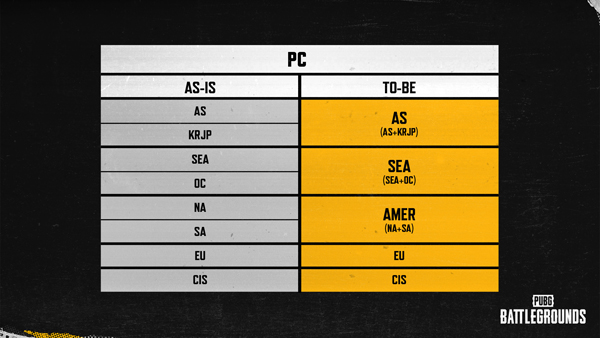 지난 8월 30일, 크래프톤은 개발일지를 통해 추후 업데이트에서 주요 지역들을 묶는 새로운 서버 환경을 만들 것을 예고했다. 한국 지역이 속한 한국/일본 서버는 아시아 지역 서버와 통합 절차를 거쳐 신규 아시아 서버로 운영된다고 밝혔다.