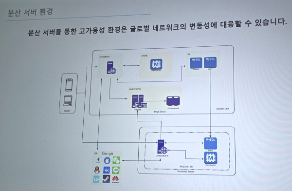 분산 서버 환경도 하이브 플랫폼이 내세우는 부분이다. 이를 통해 실제 유저들의 로그인 비율을 조사할 수 있는데, 모바일 게임 유저들은 로그인 중 전체의 0.3%가 실패한다고 한다. 그 이유는 대부분은 열악한 네트워크나 엘리베이터 등 갑작스럽게 불안정해지는 상황이다. 이때 하이브는 자동으로 분산 서버로 재로그인을 시도하고, 이를 통해 1차 실패를 겪은 유저 중 75%는 2차에서 성공한다고 밝혔다.