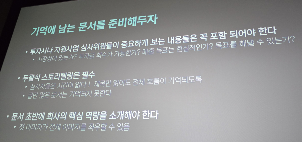 마지막으로 정 대표는 운이 들어왔을 때 잡을 준비도 미리해야 한다고 조언했다. 예를 들어 게임의 핵심을 보여줄 수 있는 문서와 빌드같은 것들이다. 요청할 때 바로 보여줄 빌드나 기억에 남기기 위해 짧지만 장점을 확실하게 어필할 문서가 반드시 필요하다는 것이다. 이것들을 준비하면 들어온 운을 잡을 수 있을 것이라고 밝히며 발표를 마쳤다.