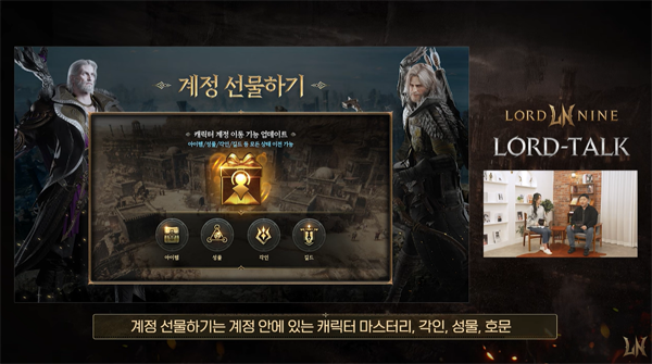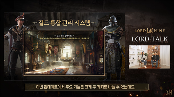 이어서 '로드나인'의 향후 개선점과 콘텐츠 업데이트에 대한 내용들을 선보였다. 가장 먼저 길드 통합 관리 시스템이 더해진다. 기존에는 각종 콘텐츠에서 즐긴 레이드 후 길드에 속한 유저들이 각자 알아서 분배와 기준을 나눠야 했지만, 이제는 길드 창고와 물품 분배 메뉴가 신설되면서 편의성이 상승될 예정이다.