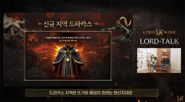 이와 함께 신규 지역 드라카스가 추가된다. 이곳은 화산 지형으로 꾸며지며, 린드리스 지역을 통해서 입장이 가능하다. 유저들은 드라카스에서 영웅 등급 이상의 망토 파츠를 파밍 할 수 있고, 강력한 장비들을 얻을 수 있다.
