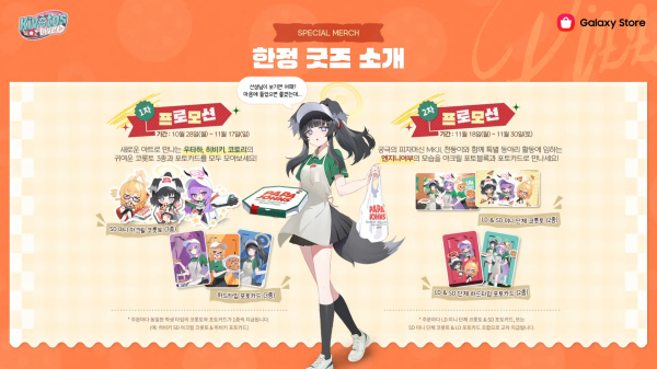 먼저 오는 28일부터 파파존스와 콜라보를 진행한다. 피자를 구매하면 코롯토와 포토카드 등의 굿즈를 받을 수 있다. 그리고 추첨을 통해 초대형 씰도 증정할 예정이다.